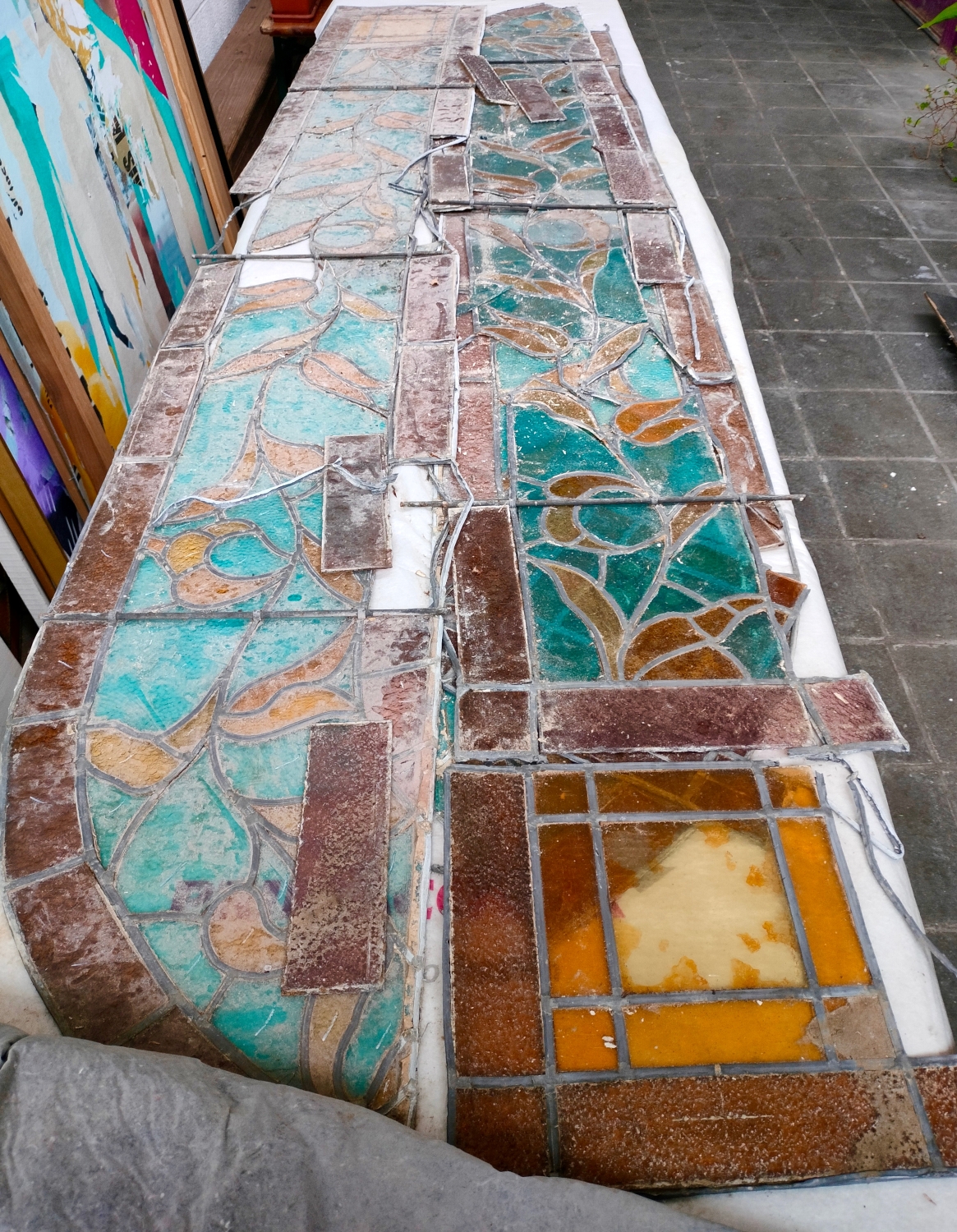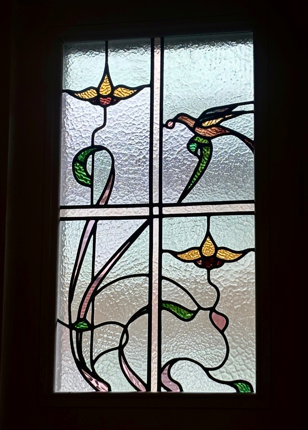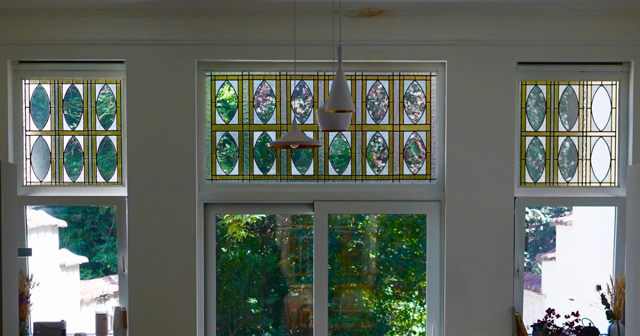 Restauration de vitraux Art nouveau dans le cadre de la rénovation d’une maison de maître.