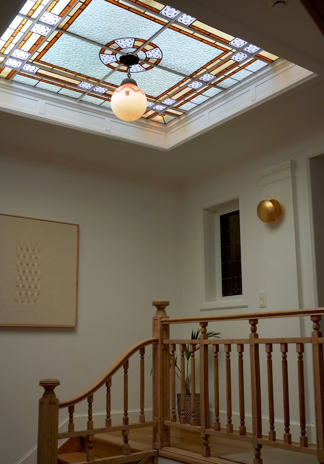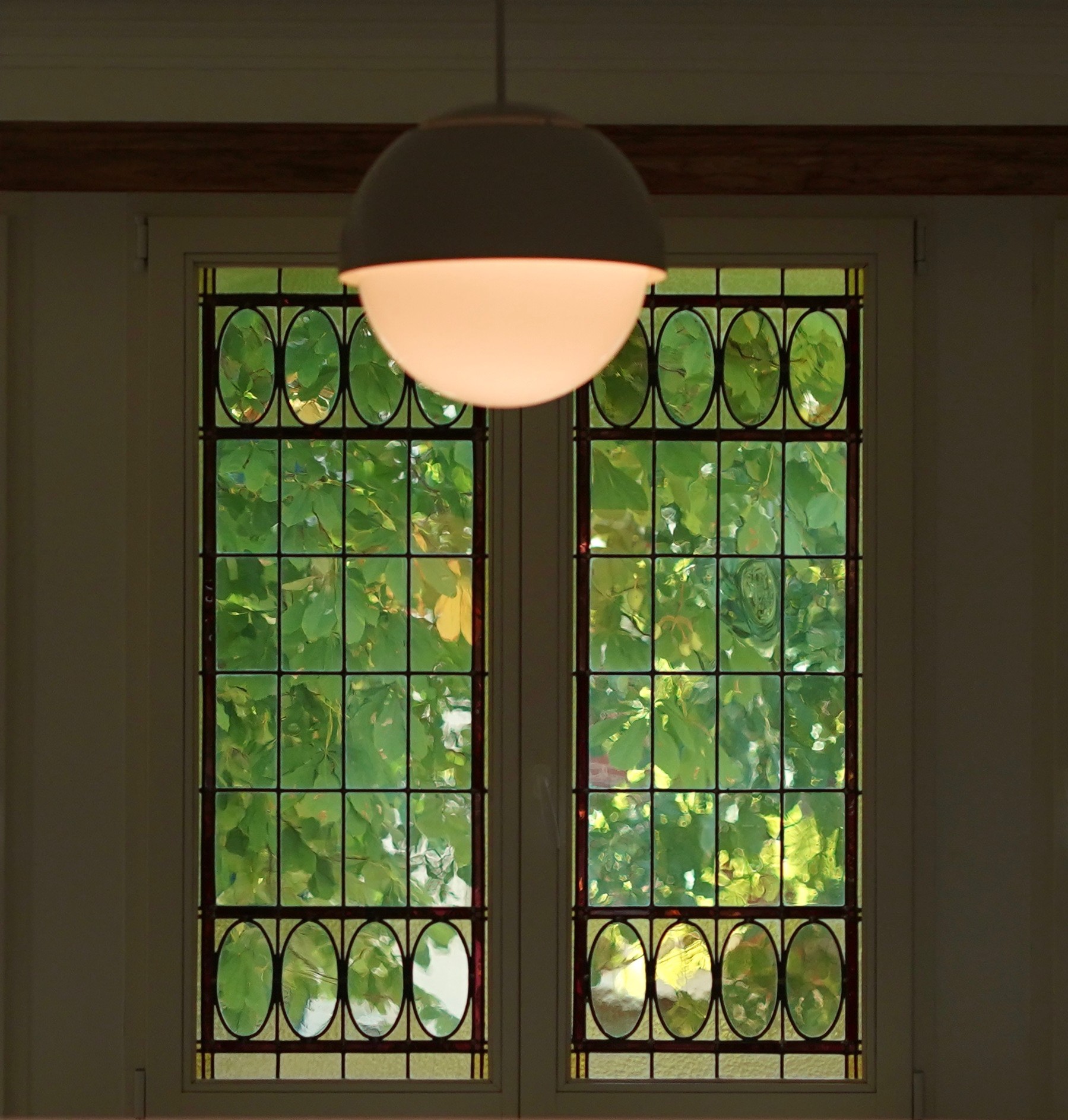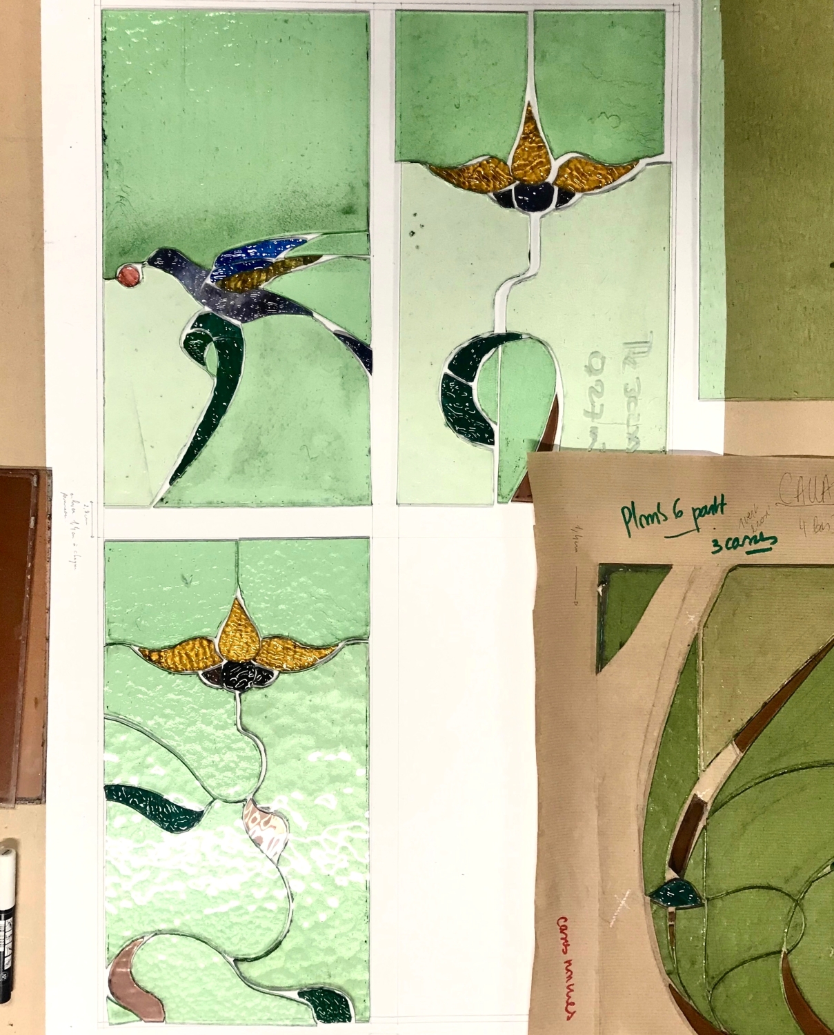 Restauration de vitraux Art nouveau dans le cadre de la rénovation d’une maison de maître.